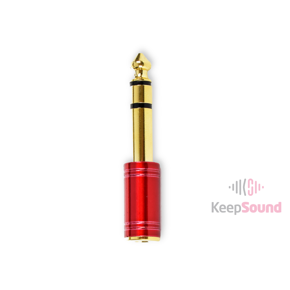 Adaptador P2/P10 ST em latão banhado a ouro e corpo vermelho