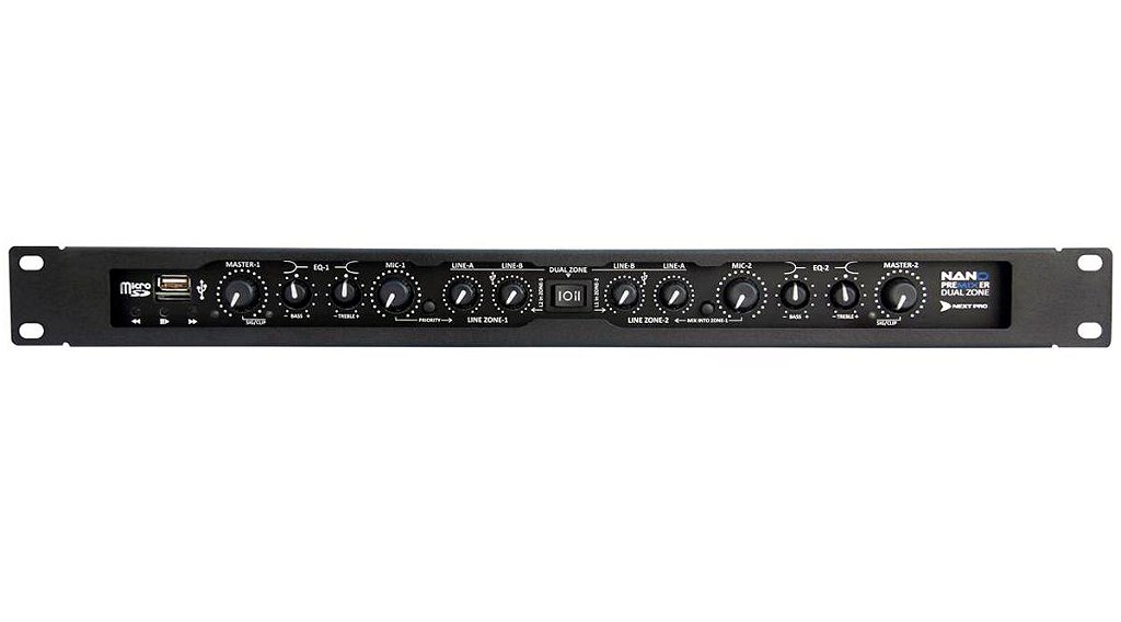 O PreMixer Dual Zone é um mixer de zona mono, para instalações com até duas zonas e sendo capaz de gerar até duas sonorizações distintas. Com quatro entradas de linha equipadas com os exclusivos Dual Zone e Voice Over, duas entradas de microfone balanceadas com comandos de prioridade e mixagem, dois geradores internos de gong/ding-dong e MP3 Player integrado; o PreMixer Dual Zone oferece uma solução versátil e completa, com recursos vitais para a sonorização de ambientes com múltiplas zonas, tais como: