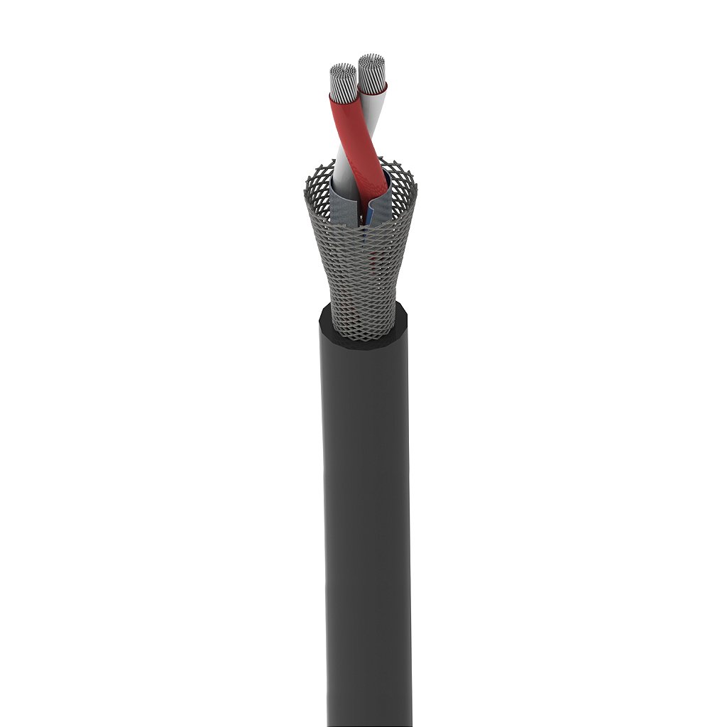 Cabo de microfone X30 balanceado com liga de Cobre OFHC (Isento de Oxigênio), blindagem trançada + fita de alumínio, bitola 0,30mm²/22AWG.