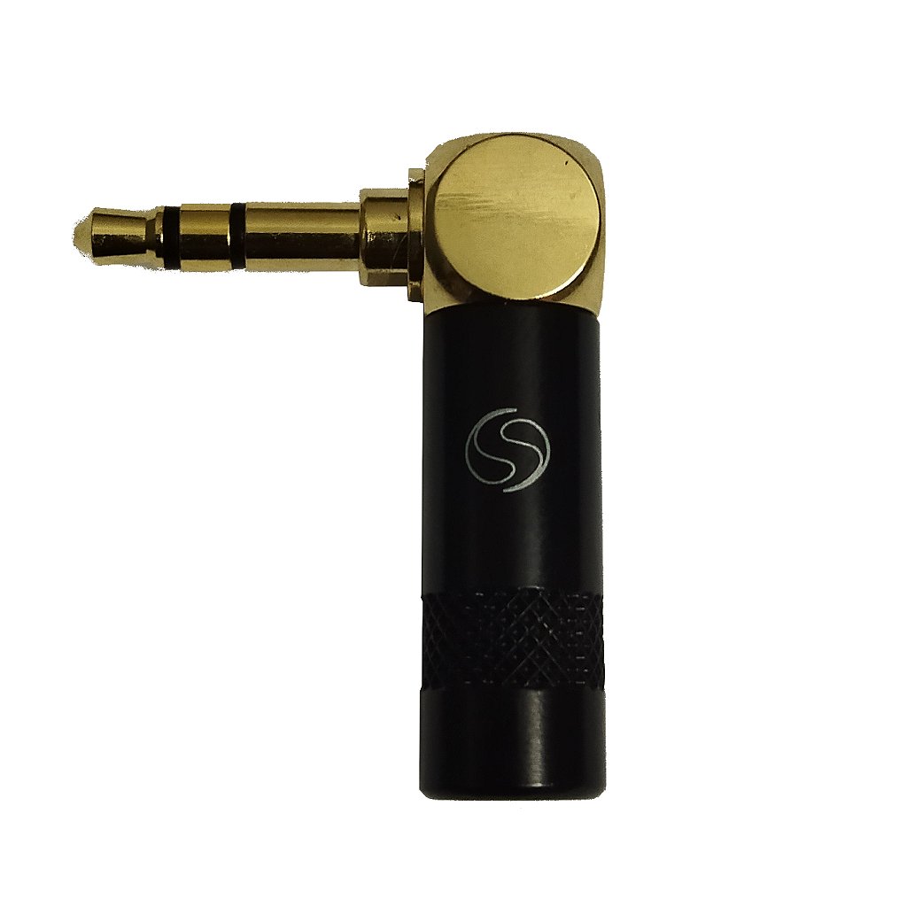 Plug P2 90º estéreo em latão banhado a ouro e capa preta