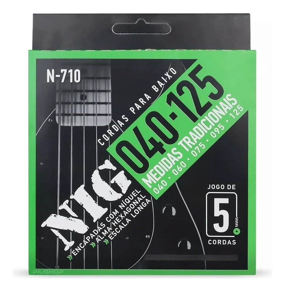 O Encordoamento para Contrabaixo Elétrico NIG N710, com 5 cordas e calibres de .040 a .125, foi desenvolvido para baixistas que buscam timbre definido, brilho equilibrado e sustain consistente. Ideal para contrabaixos de escala longa de 34" (864 mm), proporciona conforto e precisão em diferentes estilos musicais. Fabricado com alma hexagonal em aço estanhado e polido e encapamento em níquel, garante durabilidade, resistência à oxidação e desempenho profissional em ensaios, gravações e apresentações ao vivo.