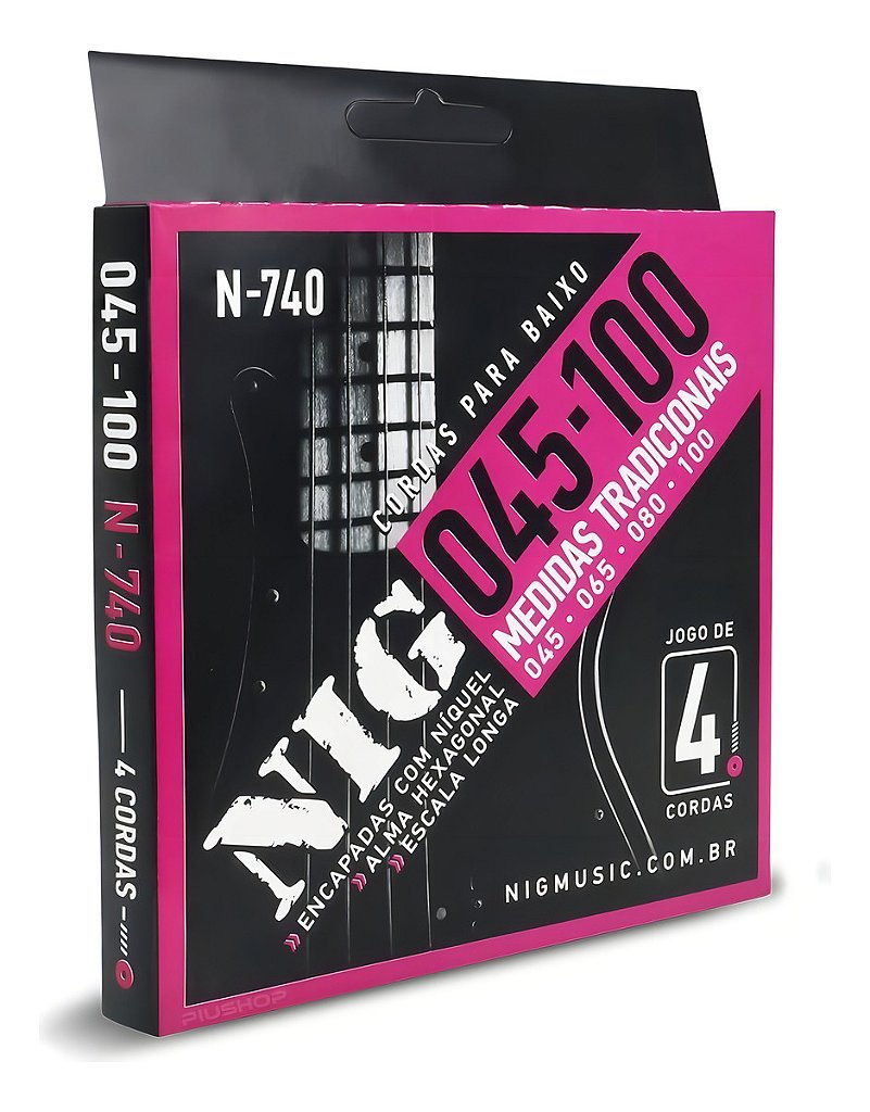 O Encordoamento para Contrabaixo Elétrico NIG N740, com calibres de .045" a .100", é ideal para baixistas que buscam timbre definido, brilho equilibrado e sustain consistente. Desenvolvido para contrabaixos de 4 cordas com escala longa de 34" (864 mm), proporciona excelente resposta em diferentes estilos musicais. Construído com alma hexagonal em aço estanhado e polido e encapamento em níquel, garante durabilidade, resistência à oxidação e desempenho profissional em ensaios, gravações e apresentações ao vivo.
