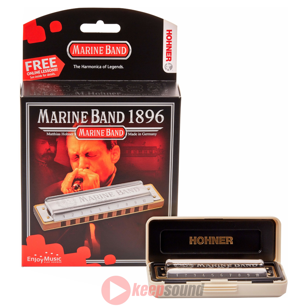 A Marine Band 1896 é uma harmônica diatônica da Hohner. O modelo é o mais tradicional da marca, e o preferido pelos grandes mestres do Blues. Possui corpo em madeira envernizada fixada com pregos seguindo a tradição. Além de contar com alto volume pelas aberturas nas laterais e som médio, placa de vozes em bronze, palhetas em latão e tampas de cobertura em aço inoxidável.