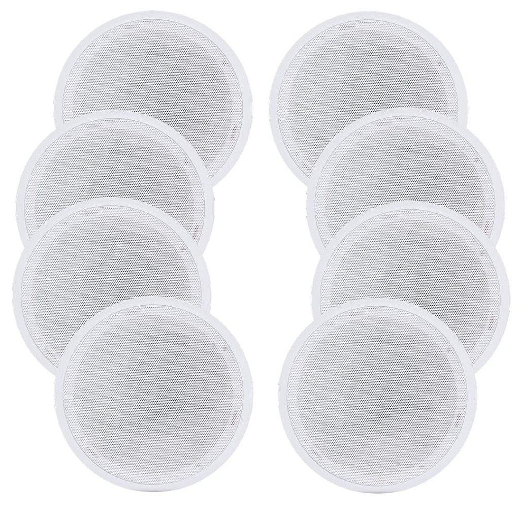 Kit com 8 Arandelas Coaxial Orion com 6 polegadas de diâmetro cada e reproduz som com potência de até 55W RMS. É uma ótima opção para potencializar o som ambiente, podendo ser instalado facilmente em forro de drywall, gesso, madeira, etc.