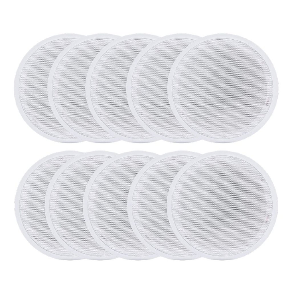 Kit com 10 Arandelas Coaxial Orion com 6 polegadas de diâmetro cada e reproduz som com potência de até 55W RMS. É uma ótima opção para potencializar o som ambiente, podendo ser instalado facilmente em forro de drywall, gesso, madeira, etc.
