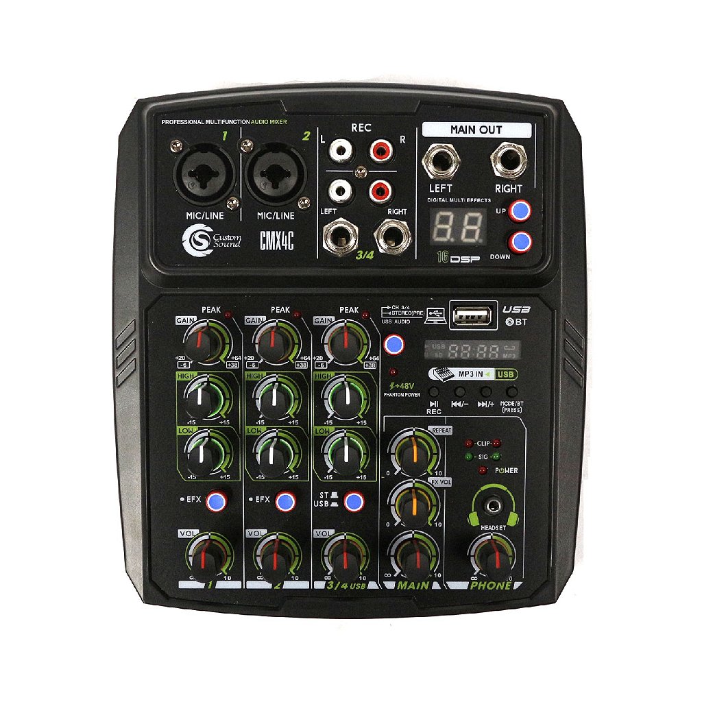 Mesa De Som 4 canais Custom Sound CMX4CC/ Usb player e rec, Bluetooth, efx delay, e função interface usb.