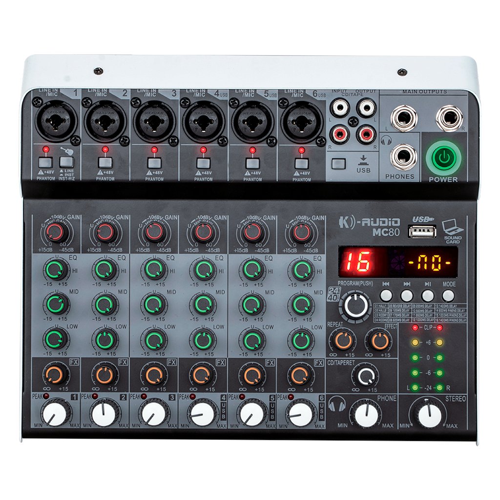 A Mesa de Som 8 Canais MC 80 da K-Audio é uma escolha ideal para profissionais e entusiastas do áudio que buscam um equipamento versátil, de alta qualidade e repleto de recursos para mixagem e processamento de áudio.