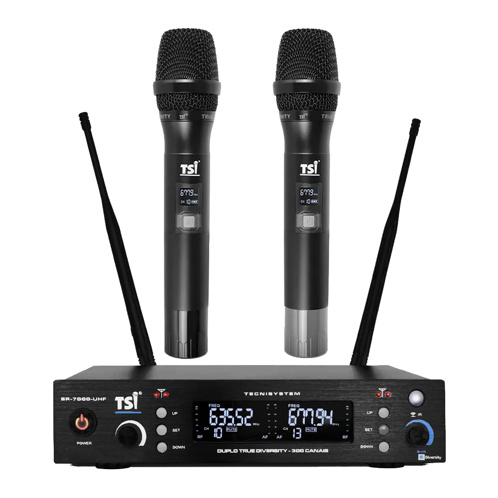 Microfone Profissional Duplo de Mão Sem Fio BR-7000-UHF - TSI