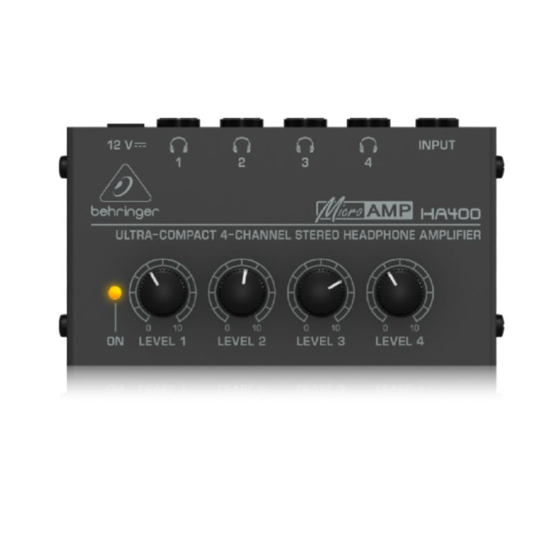 Um sistema de distribuição permite que todos escutem e controlem o volume de seus próprios fones de ouvido. O HA400 compacto e flexível pode alimentar até 4 pares de fones de ouvido e até 4 volumes independentes, com excelente qualidade de áudio - até no volume máximo!