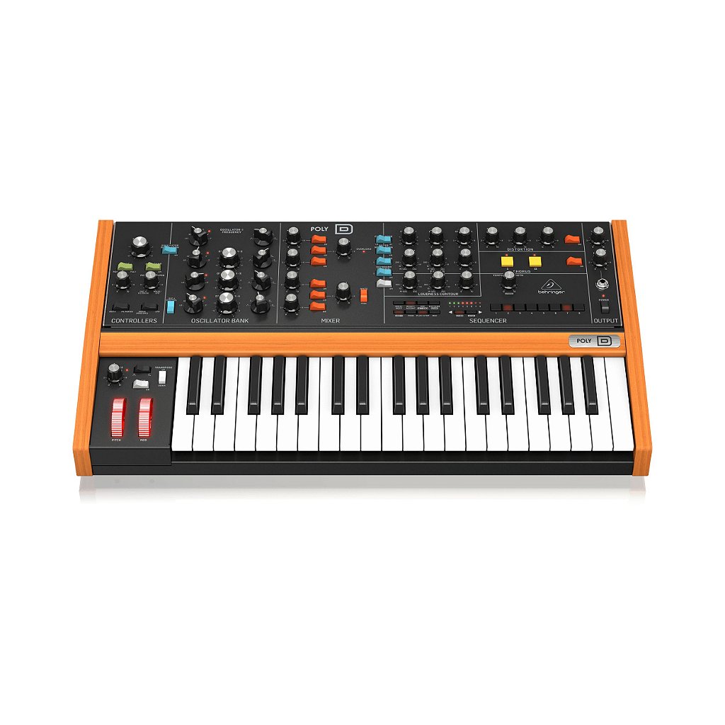 Behringer leva o seu bem sucedido clone Minimoog "Modelo D" para o próximo nível e enobrece-o como o parafónico "Poly D" ! Este é um sintetizador analógico com um teclado sensível à velocidade de 37 teclas. Este sintetizador foi expandido com um quarto oscilador equivalente , modos de divisão em duo e de jogo parafónico , sequenciador e o coro de efeitos analógicos e distorção . Uma característica agradável é, como o original dos anos 70, o painel de controle ajustável ; assim você pode sempre encontrar facilmente a melhor posição de controle para você.