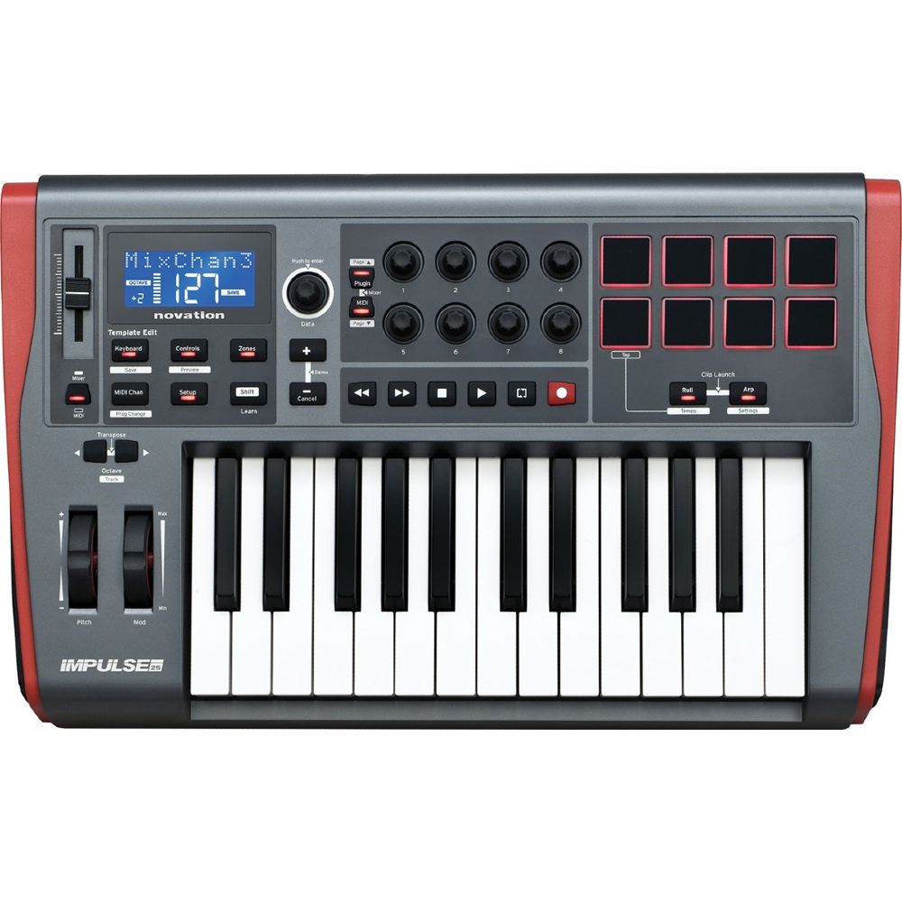 Impulse 25 da Novation é um teclado controlador MIDI USB com 25 teclas semi-pesadas com aftertouch atribuíveis. Ele foi projetado para se sentir como um instrumento e não um periférico de computador, e responde com mais precisão e de uma forma "musical" quando desencadeando um sintetizador ou instrumento de software.